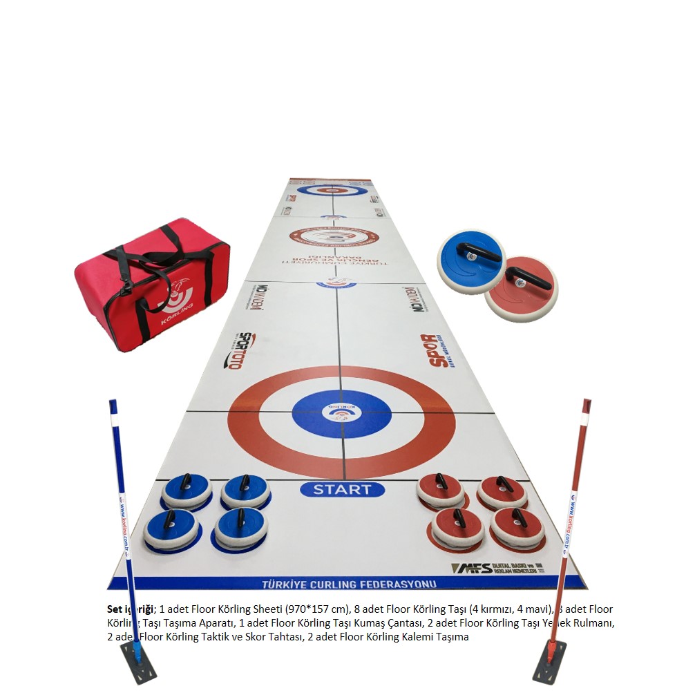 Floor Curling Müsabaka Seti Standardizasyonu’nda yer alan ana parçalar ve tavsiye edilen diğer parçaları içeren Floor Körling Müsabaka Setimiz; antrenörlük ve hakemlik kurslarında, il-bölge ve Türkiye şampiyonalarında, halk eğitim merkezlerinde, gençlik merkezlerinde, otellerde vb. kullanılmaktadır.